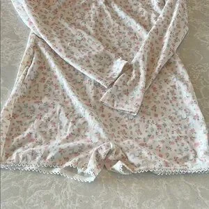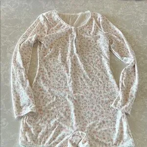 Delicate floral pattern with button-up front. Ribbed texture adds style. Ideal for sleepwear.