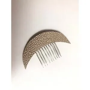 Artisan Handmade Leather Crescent Moon Celestial hair comb- Beige cobblestone