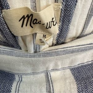 Madewell Huston Linen Blend Stripe Pull On Crop Pant Blue/White Size Med…