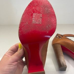 Christian Louboutin tan Mary Jane peep toe heel