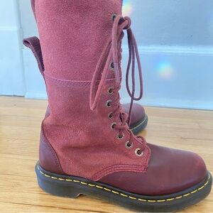 Dr. Marten Hazil-Tall Slouch Combat Moto Boot-Red Leather-Women 8