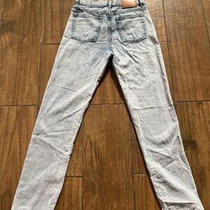 Please refer to pictures as these jeans have a slight rip in between the back belt and back pocket area but it does not look bad at all. I’m open to offers on these.
