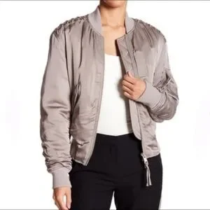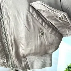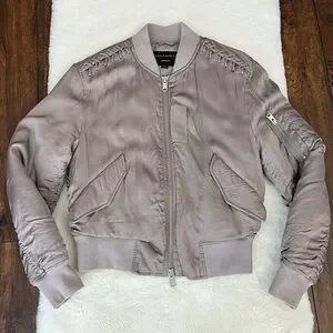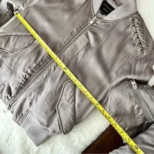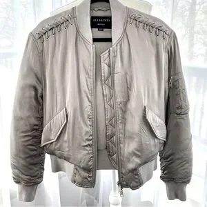 This is a Slightly Oversized All Saints Eyelet Shoulder Bree Laced Satin Bomber Jacket.