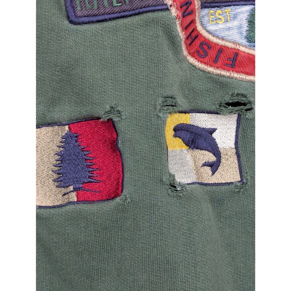 Vintage Chaps Ralph Lauren Green Embroidered Sweatshirt Size Small Distressed