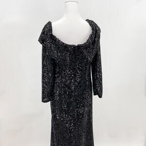 Rene Ruiz Dress Sz 12 Black Sequin Gown Formal Off The Shoulder Metallic Evening