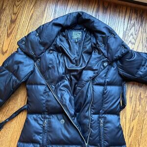 Affliction Black Premium 73 Live Fast Warm Long Puffer Coat Jacket Zip Belt XS