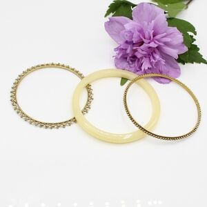 -1 goldtone with faux pearls, 1 acrylic and 1 goldtone with beads