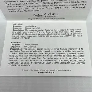 2014 Civil Rights Act of 1964 Proof Silver Dollar from The United States Mint