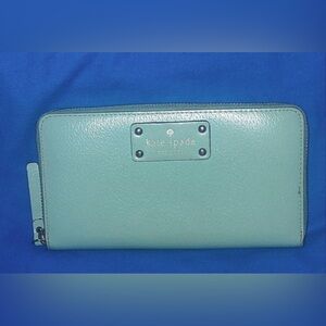 Kate Spade Wellesley Mint Mojito Leather Long Zip Around Wallet