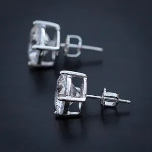 Unisex 10mm Brilliant-Cut Diamond Stud Silver Earrings