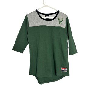 Milwaukee Bucks Women's 3/4 Sleeve Green & Gray New Era Shirt Small