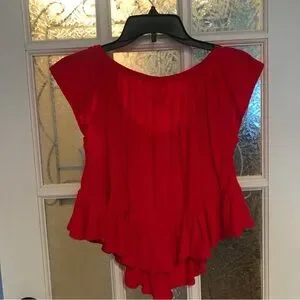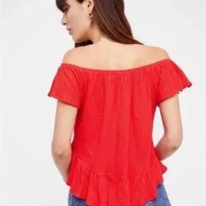 Free People Red Ruffled Peplum Top