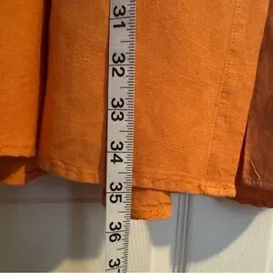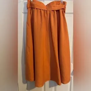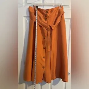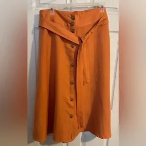 Stylish orange button-down belted skirt perfect for any occasion. Features a flattering tie waist for a chic look. Linen Blend. Midi Swing A-Line.