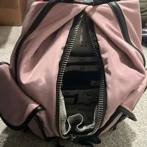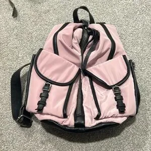 Gorgeous pink backpack by Aimee kestenberg. EUC. Pink nylon and black leather. 13x11x5.5. Has a locking latch on zipper that keeps the zipper closed for security. Love this bag but I just don’t use it and would love for someone to enjoy it.