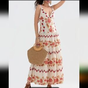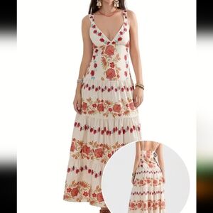 Gorgeous maxi sundress with orange floral print on cream background size large