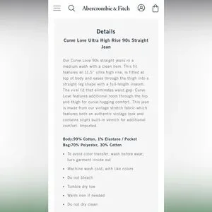 Abercrombie and Fitch Curve Love Ultra High Rise 90s Straight Jean Women’s Sz 20