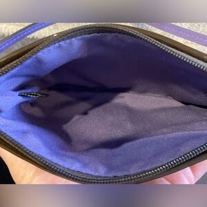 Coach Patch Corner Zip Brown and Copper Purple Strap Stitch Wristlet Purse