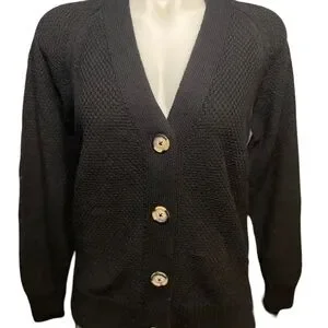 GAP. V neck cardigan sweater. 4 marble tone Buttons. Tight cable knit. Measurements armpit to armpit 19” Shoulder to hem 21” Sleeve 18” True black Machine wash cold gentle cycle do not use fabric softeners dry on low for best results.