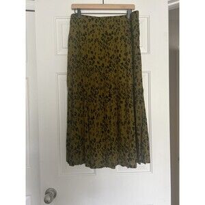 Garnet Hill Green Leopard Print Midi Skirt Size Large Lined Pockets