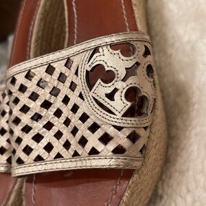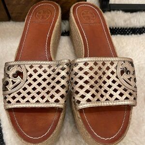 Tory Burch Gold Metallic Slip on Platform Sandals Size 91/2 US