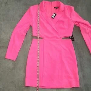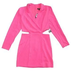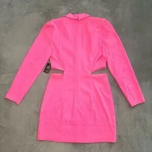 Express Blazer Mini Dress Women Size M Hot Pink Gum Pop Cut Out Glam Stretch NEW