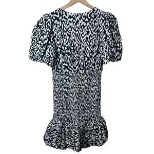 Scoop Women's Black and White Printed Smocked Dress Size Medium Short Sleeve