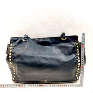 AUTH Valentino Garavani Black Medium Rockstud Tote