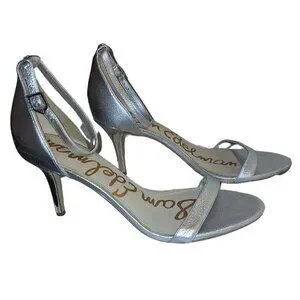 Sam Edelman Metallic Silver Ankle Strap Heels Size 10 – Bridal