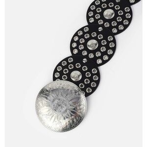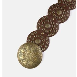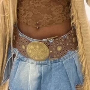 Boho Vegan Leather Grommet Statement Round Buckle Wide Belt