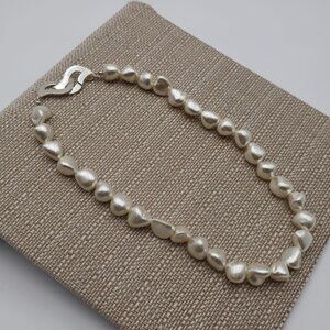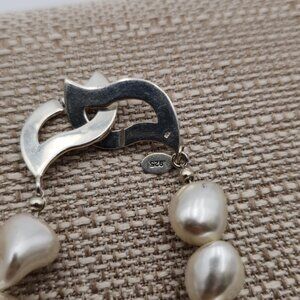 17.5 Inch Sterling Silver Faux Pearls Unique Necklace B425
