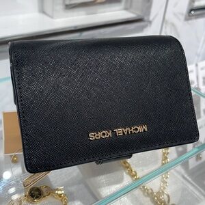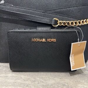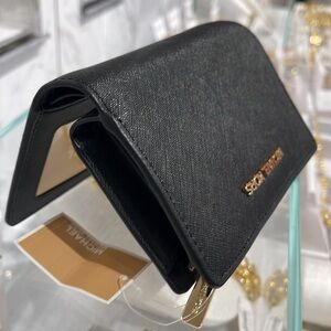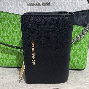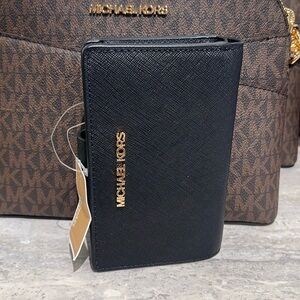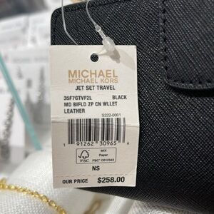 Michael Medium Crossgrain Leather Bifold Wallet Black NWT