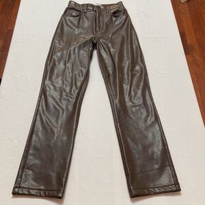 Abercrombie &Fitch The 90s Straight Faux Leather High Rise Pants Rich Br…