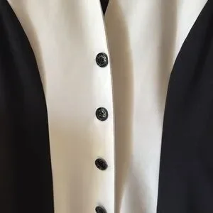 This elegant black and white dress features a stylish button-down design, perfect for any occasion. The contrasting colors create a sophisticated look. I accept all reasonable offers.