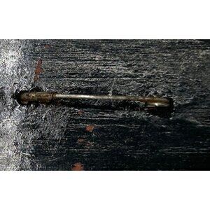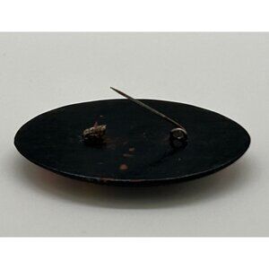 Minor surface scratches and paint wear on the back; pin clasp in functional condition. Measurements: 2.75 inches (length) x 1.5 inches (width).