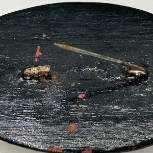 Vintage Hand-Painted Floral Black & Red Wooden Brooch Pin