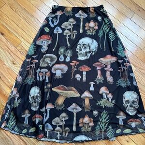 Hot Topic black mesh Mushroom/Skull midi Skirt, skull forest foliage size Medium
