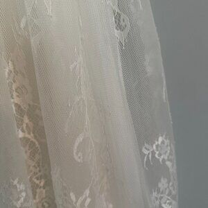 Stunning Vintage inspired lace dress with elbow length sleeves and removable sparkle belt. For a Flower Girl, Communion or special event The color is antique white and the lace is soft, not scratchy and has French eyelash edging. The dress is fully lined and has a back zipper.