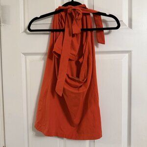 Imagine yourself strolling along a sun-drenched beach, the gentle breeze playing with your hair. This Banana Republic coral red halter top is the perfect piece to complete that effortless, vacation-ready look. It's more than just a top; it's a splash of summer sunshine in your wardrobe!