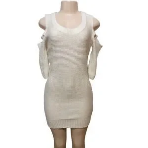 MAD For Me Shoulder Cut Out Dress Women Small Cream Acrylic Off Shoulder