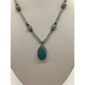 Jadeite Beaded Necklace Pendant Natural Semi-precious Stone Handcrafted 16-inch