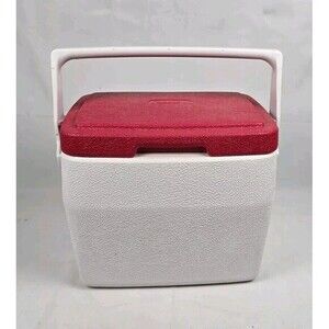 This vintage Coleman lunch box mini cooler is the perfect companion for your outdoor adventures. With a portable size and a white color with a red lid, this cooler box is both stylish and functional. It features a portable design, making it easy to carry with you wherever you go, and a cup holder for your convenience.