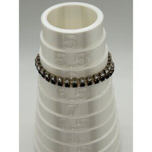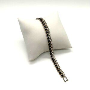 Vintage Tennis Bracelet With Black & Clear Rhinestones Silver Tone 6.5 Inches Lo