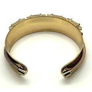 Gold-tone Cuff Bracelet Art Deco Style with Mirror Finish Crystal Baguettes