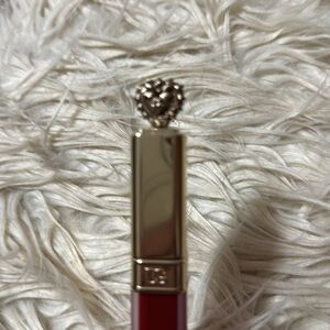 This Dolce & Gabbana lipstick in a vibrant shade offers a rich color with a sleek gold-toned metallic tube packaging.