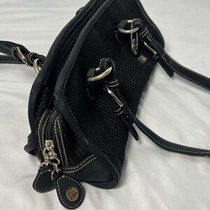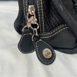 The Sak Shoulder Double Strap Purse Black Knit Zipper Lined Interior QUALITY