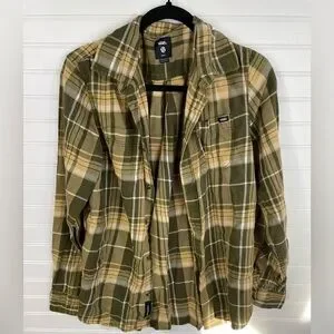 Vans green and yellow flannel with pockets! In great condition! Size small Mens. Has button son the cuffs of sleeves as well