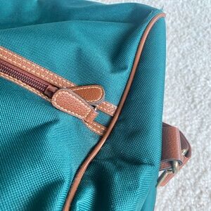 Very cool promotional Polo Ralph Lauren bag. Great size for packing a bag for a weekend trip and likely fits in overhead on an airplane too. Classic green, gold and leather colors.
