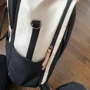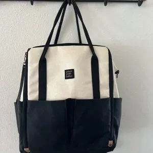 Zippered padded compartment at back holds diaper changing items or can carry a laptop.