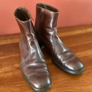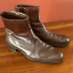 A very cool pair of men’s size 11.5 vintage Florsheim Beatle boots. Leather. Zippers work as they should.