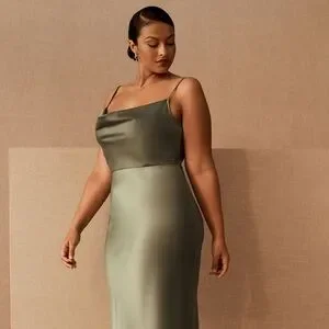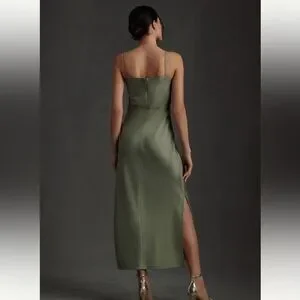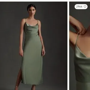 BHLDN Cali Satin Cowl-Neck Midi Slip Dress 💚